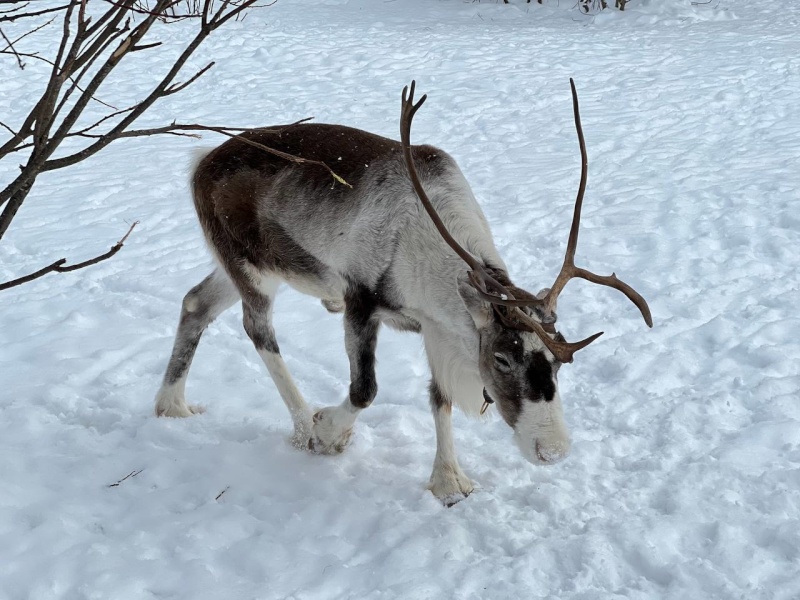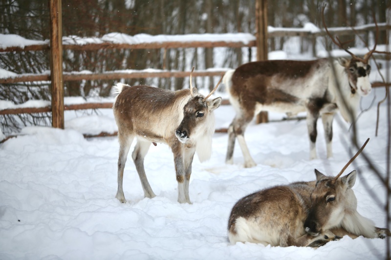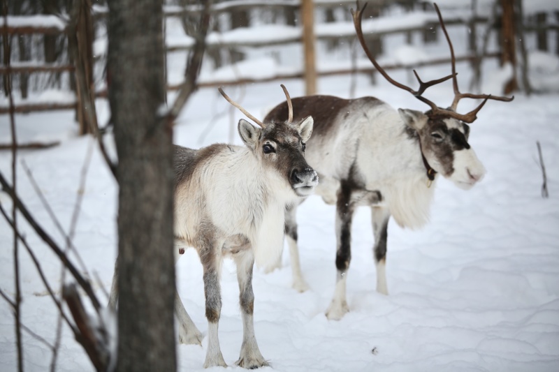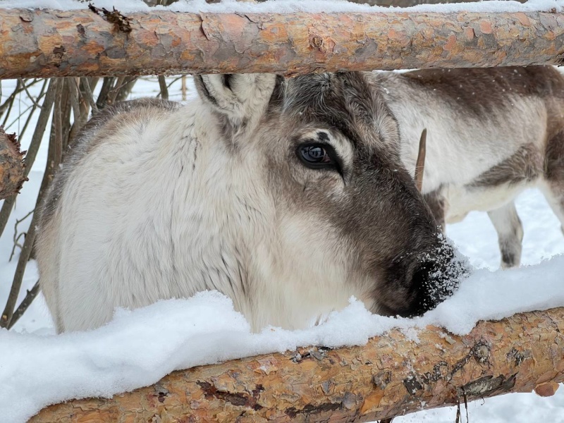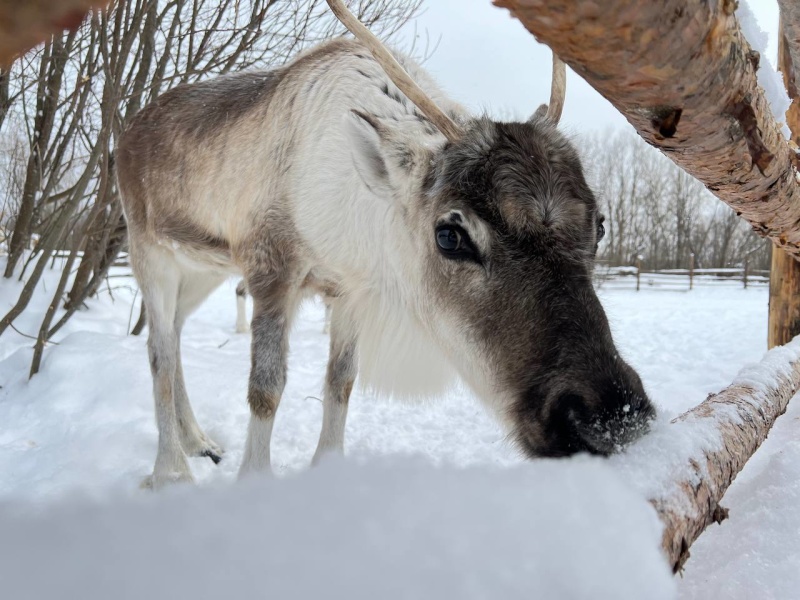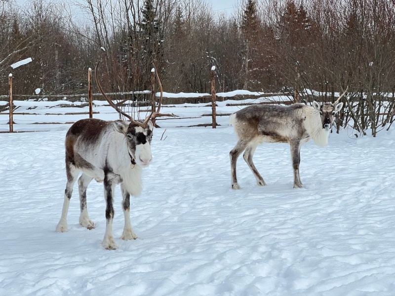 - Контакт с четырьмя настоящими северными оленями — добрыми, любопытными и удивительно фотогеничными. Кормление предоставленным кормом