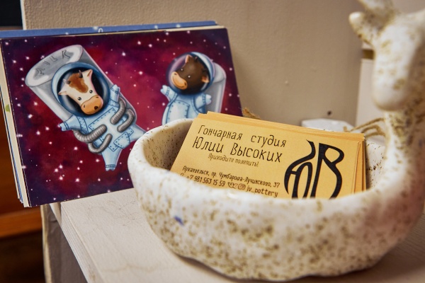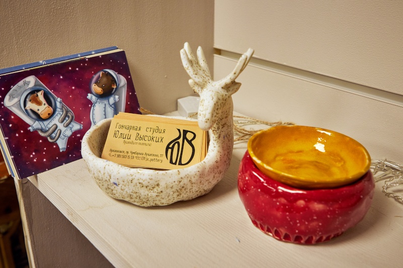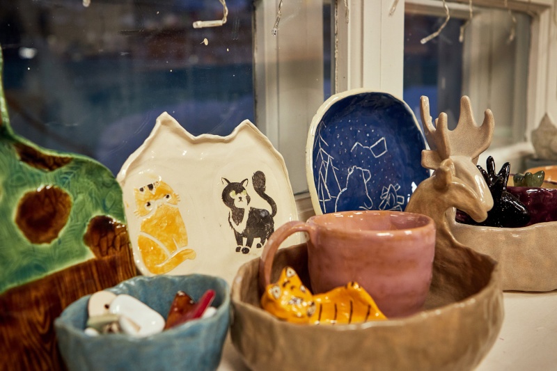 - Готовая керамика: если хотите увезти сувенир сразу — в студии всегда есть работы наших мастеров. Уникальная посуда, интерьерная керамика, северные образы.